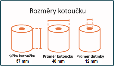 Pokladní termo kotoučky mají rozměr: šíře 57mm , průměr návinu 40mm