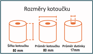 Pokladní termo kotoučky mají rozměr: šíře 80 mm , průměr návinu 80 mm.