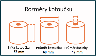Tyto pokladní termo kotoučky o rozměru: šíře 57mm , průměr návinu 60 mm.